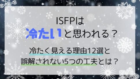 そんな悩みや不安にお答えします。 穏やかで優しい印象があるISFPですが、 実は、「冷たい人」だと誤解されていることも多いんです。 自覚がないのに「冷たい」なんて言...