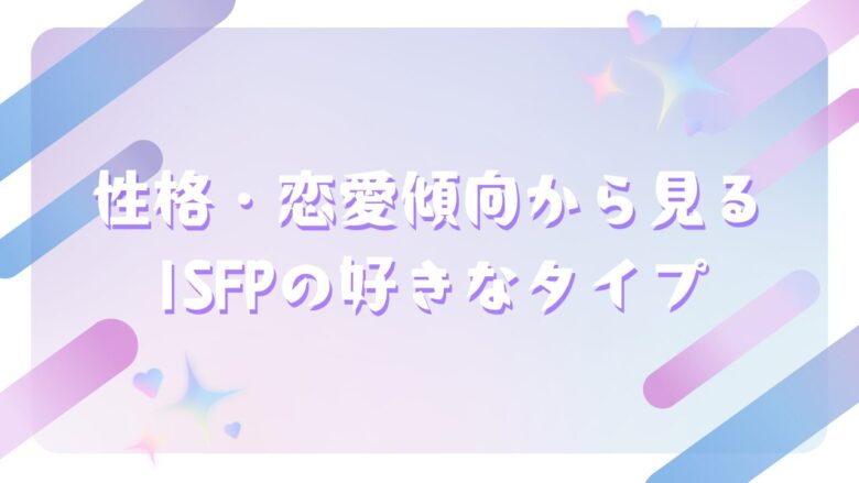 性格と恋愛傾向から見たISFPの好きなタイプ3選を解説します。
